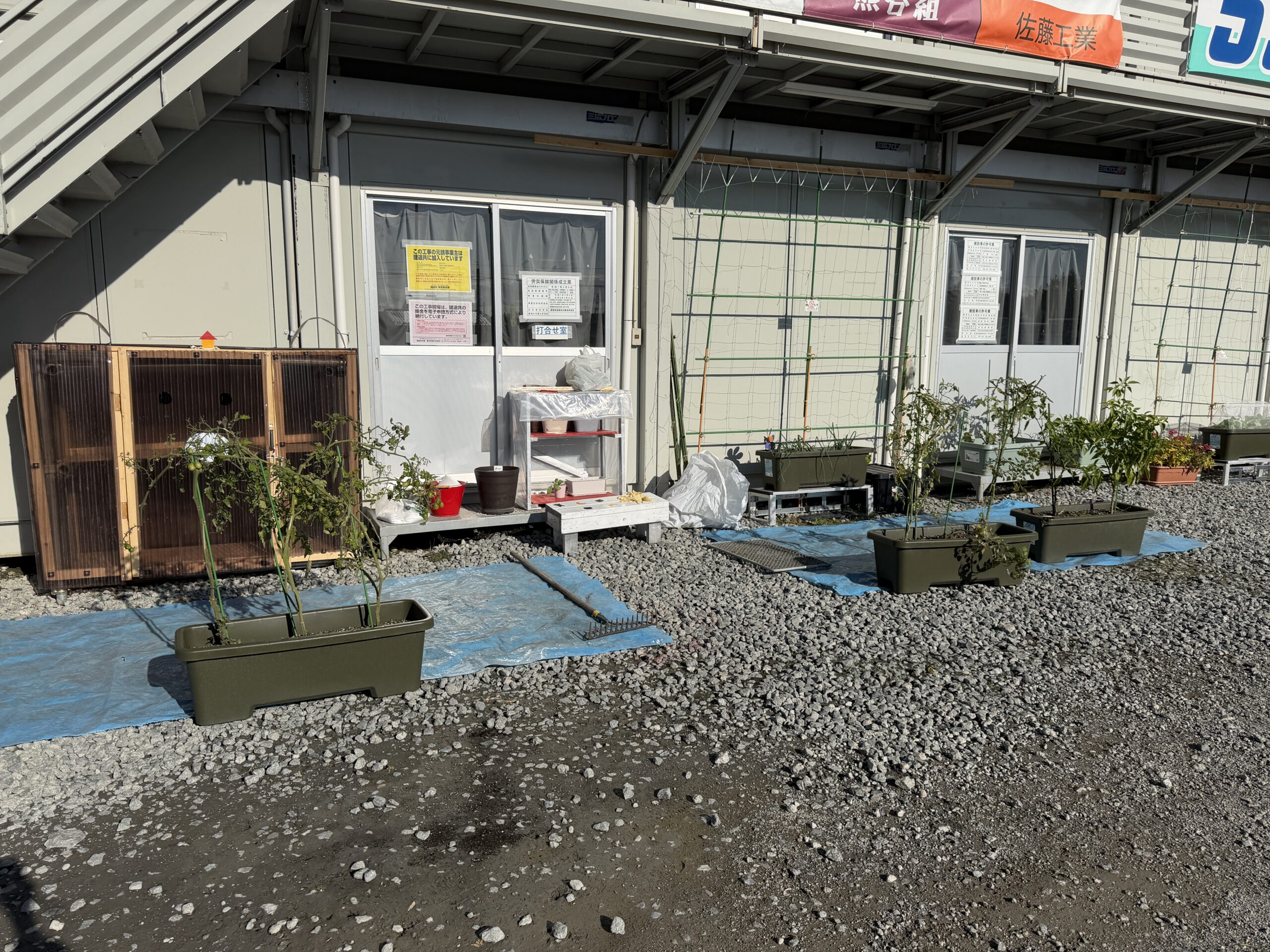 事務所菜園ではプランターを使用している為、収穫し終わった夏野菜の土を再利用しています🌱