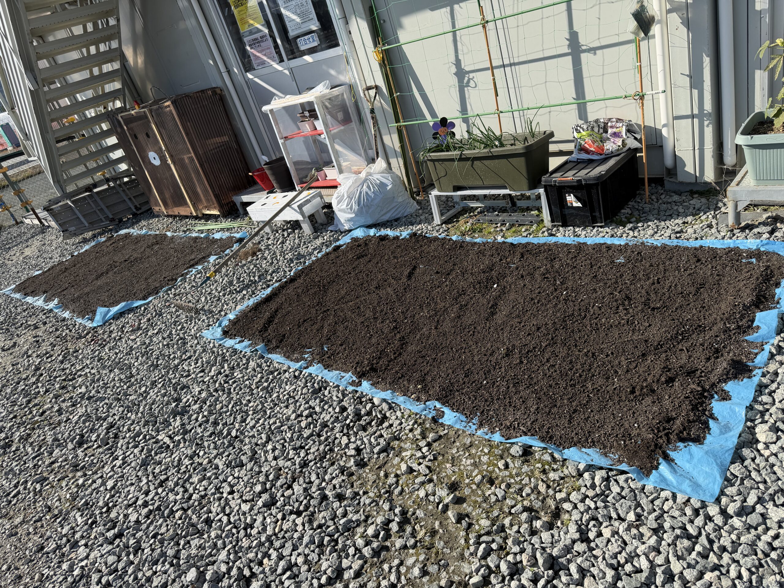 👆 出した土を日光に当てて乾燥させながら紫外線消毒中🌞