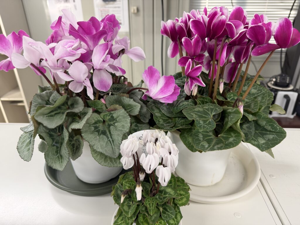 シクラメンはそれまで上を向いていたのを、恥ずかしさと嬉しさのあまりにうつむいてしまった、