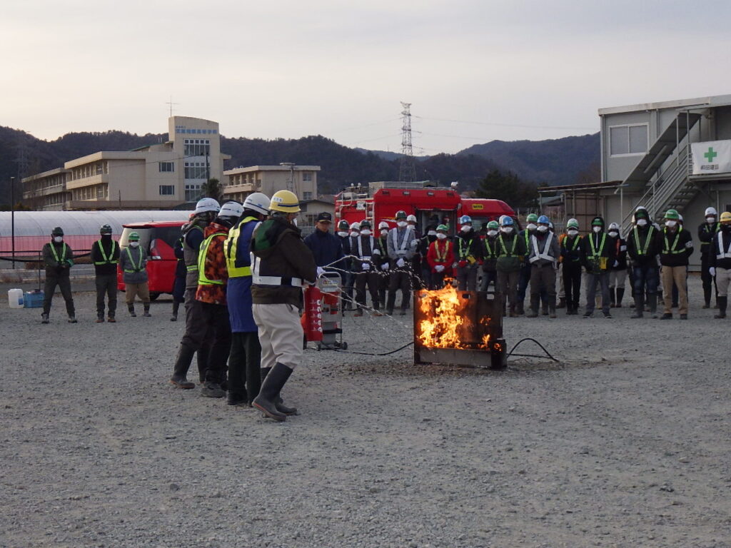 大熊町 現場事務所朝礼広場にて「消防訓練」を実施しました。
