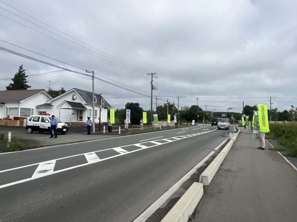 大熊町 「令和6年秋の交通安全運動」の一環として双葉警察署警察官とともに、 大熊町内で交通安全の呼びかけ運動を行いました。