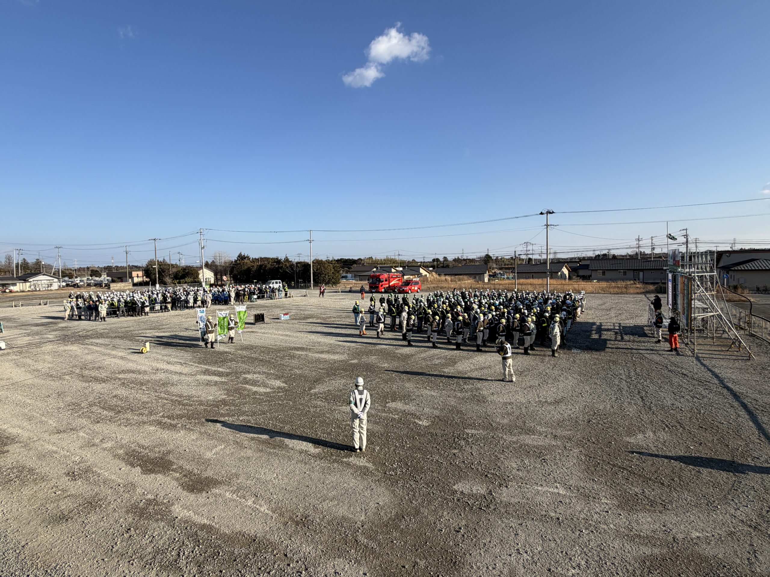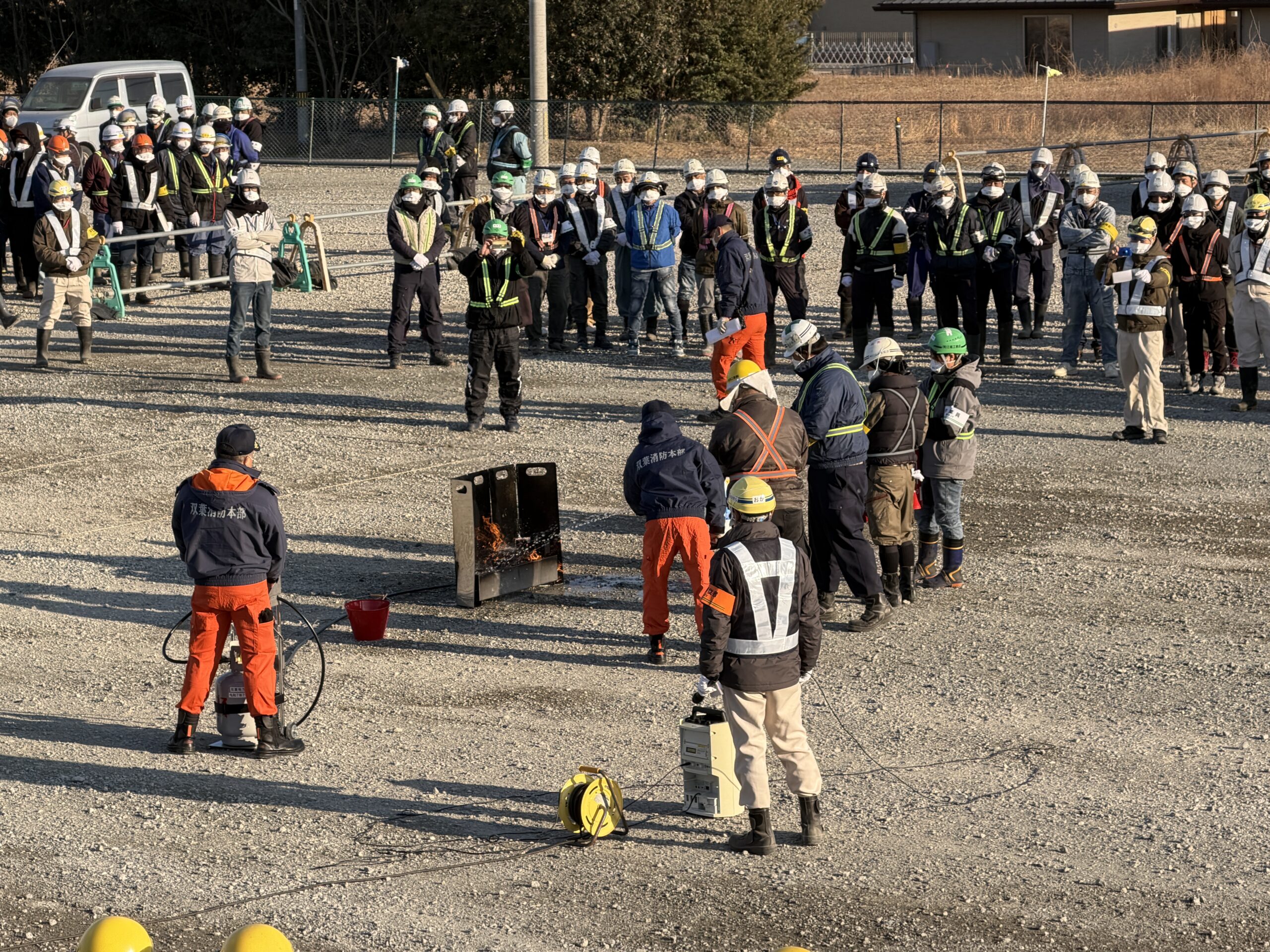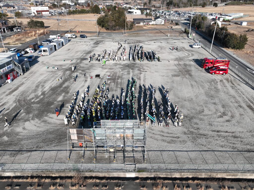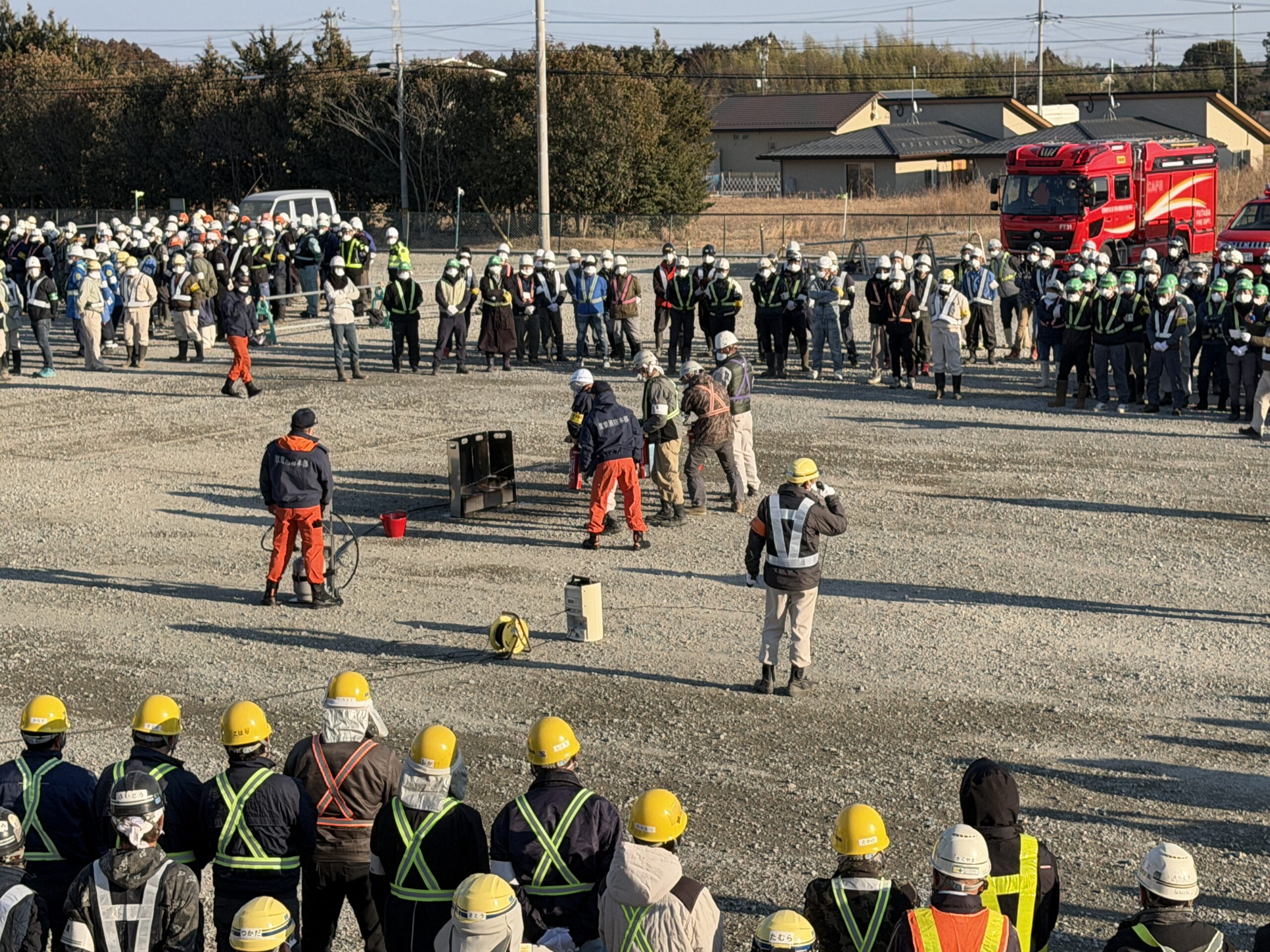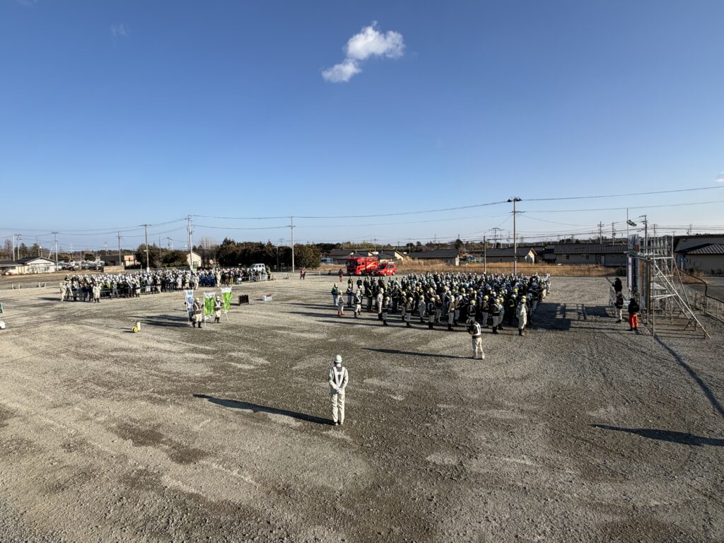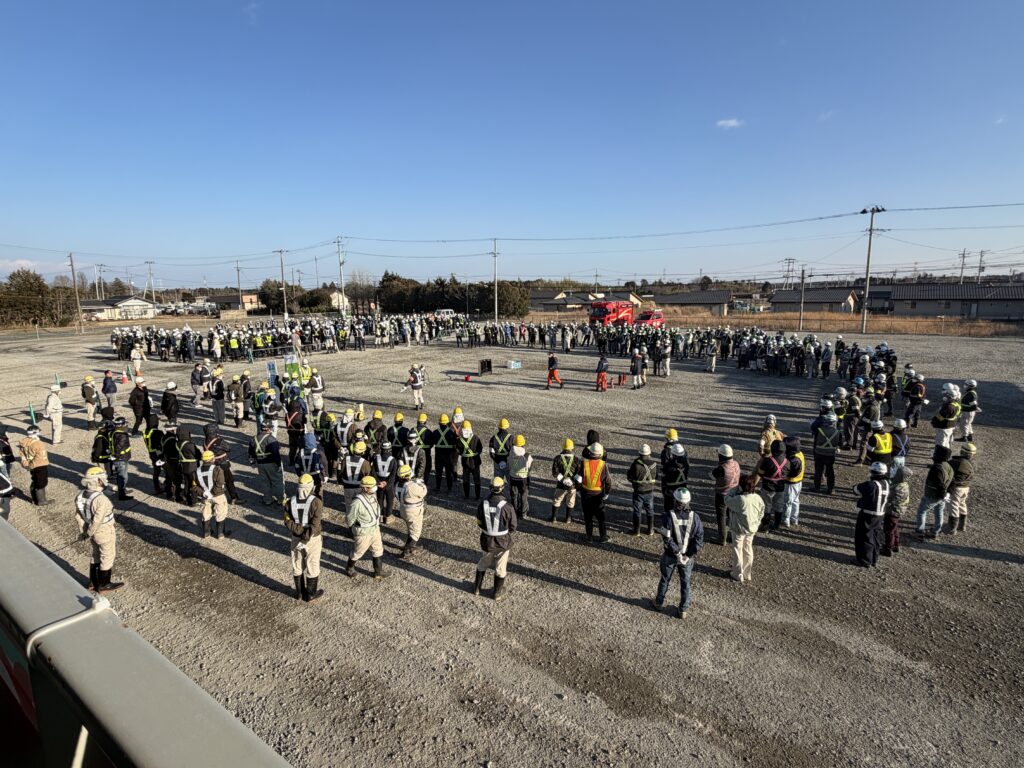 大熊町 現場事務所朝礼広場にて「消防訓練」を実施しました。